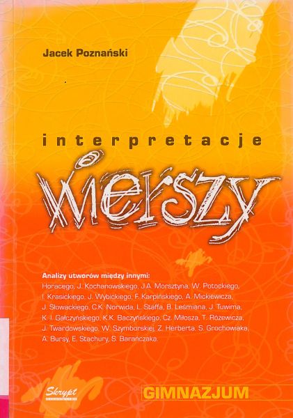 Interpretacje wierszy : gimnazjum / Jacek Poznański. - Warszawa : "Skrypt", cop. 2004. - 143, [1] s. ; 21 cm.