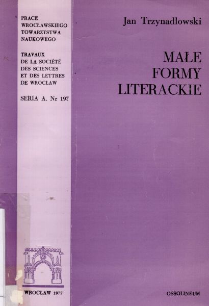 Małe formy literackie / Jan Trzynadlowski. - Wrocław : Zakład Narodowy im. Ossolińskich, 1977. - 143, [2] s., [2] k. tabl. : il. ; 21 cm.
