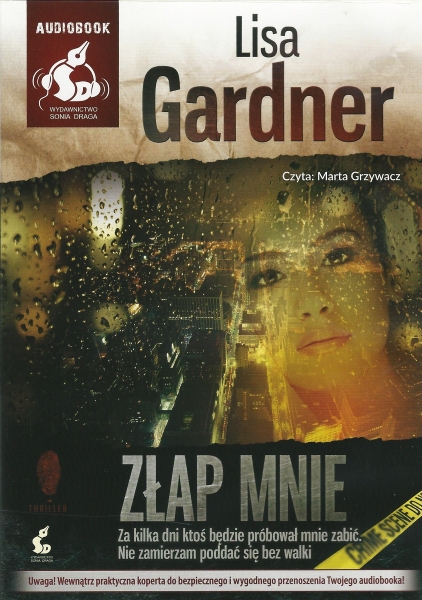 Złap mnie / Lisa Gardner ; z ang. przeł. Monika Wiśniewska ; czyta Marta Grzywacz. - Katowice : Wydawnictwo Sonia Draga, 2014. - 1 płyta (CD-MP3) (14 godz. 25 min.) : dźw. ; 12 cm.