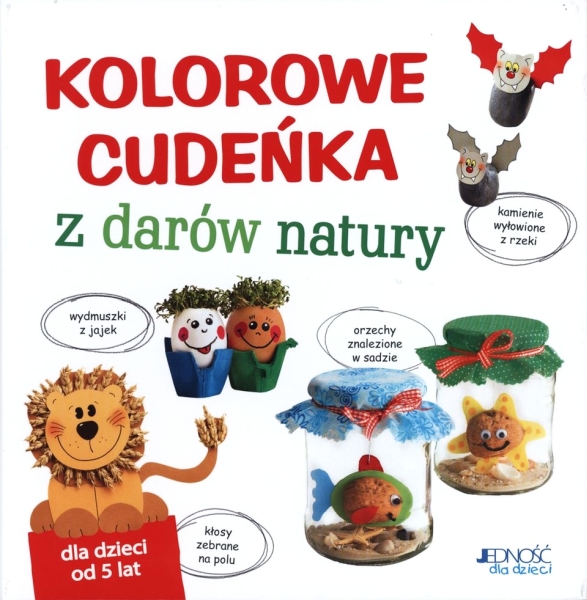 W przyrodzie można znaleźć mnóstwo naturalnych materiałów, z których mogą powstać przeróżne kolorowe cudeńka: krokodyle z orzechów włoskich, motyle z liści, wyścigówka z kolby kukurydzy, fantazyjne obrazy piaskowe i jeszcze wiele innych! Ta książka zawiera pomysły na prace ręczne z wykorzystaniem darów natury znalezionych w lesie, blisko drogi, na łące czy w ogrodzie. Proste instrukcje, kolorowe zdjęcia i wesołe ilustracje ułatwiają wykonanie figurek i zachęcają do szukania własnych pomysłów. Dzięki temu rozwijamy w zabawie dziecięcą kreatywność i fantazję. Nie ma na co czekać! Ruszajcie na spacer i zbierajcie różne skarby: kasztany, żołędzie, kamienie, liście, muszle, jagody, szyszki… A potem twórzcie małe dzieła sztuki!