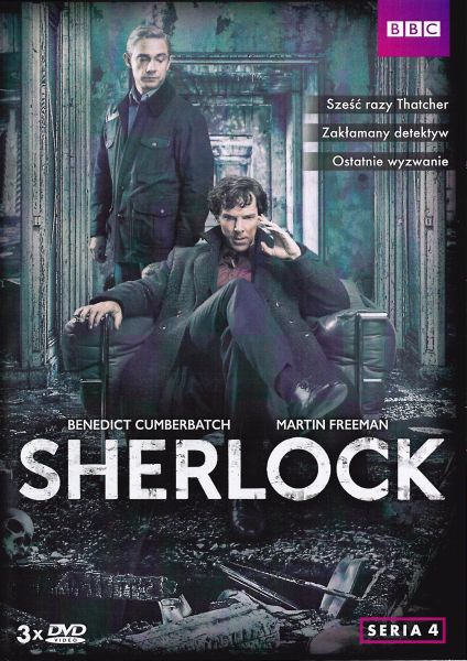 Sherlock : seria 4 / reż. Rachel Talalay, Nick Hurran, Benjamin Caron ; scen. Steven Moffat, Mark Gatiss. - Warszawa : Best Film CO, 2017. - 3 płyty wiz. (DVD) (ok. 270 min.) : dźw., kolor. ; 12 cm.