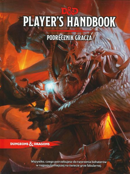 "Player's Handbook" (Podręcznik gracza) to najważniejsze źródło wiedzy dla wszystkich grających w Dungeons & Dragons. Zawiera zasady dotyczące tworzenia i rozwoju postaci, jej pochodzenia i umiejętności, eksploracji i walki, a także wyposażenia, czarów i wielu innych aspektów gry. Skorzystaj z tej książki, aby stworzyć ekscytujące postacie należące do legendarnych ras i klas D&D. W podręczniku znajdziesz: wstęp dotyczący tego jak grać w grę fabularną Dungeons & Dragons; rozdział, który przeprowadzi krok po kroku przez proces tworzenia nowych bohaterów; opisy przeróżnych ras, klas, cech osobowości, sprzętu a także przeszłości postaci graczy; wyjaśnienie mechanicznych aspektów gry w D&D, od statystyk, przez testy, walkę i trudy życia codziennego związane z podróżowaniem; zasady używania magii i ponad 300 unikalnych zaklęć; opis stanów postaci; sfery egzystencji i cały panteon bóstw gotowych do wykorzystania w grze; oficjalną kartę postaci. Dzięki Dungeons & Dragons zanurzysz się w świecie pełnym przygód. Odkryjesz starożytne ruiny i zbadasz niebezpieczne podziemia. Będziesz walczyć z potworami i poszukiwać legendarnych skarbów. Wraz ze swoimi towarzyszami zdobędziesz doświadczenie i moc podczas wędrówek po nieznanych krainach. Świat potrzebuje bohaterów. Czy odpowiesz na wezwanie?