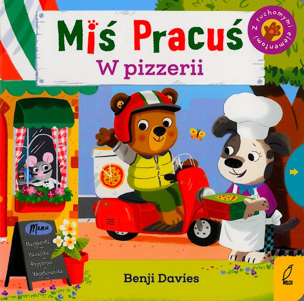 Poznawajcie świat z Misiem Pracusiem! Czytając wesołe książeczki i przesuwając ruchome elementy, mały czytelnik może poznać różne zawody lub miejsca. Dziś pora na pizzę! Dołączcie do niego w kuchni i wspólnie pokrójcie pomidory, zagniećcie ciasto i dobierzcie składniki. Pycha!