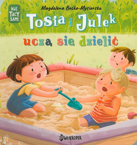 Seria "(Nie) tacy sami" powstała z potrzeby serca – zarówno Autorki, jak i Wydawcy. Magdalena Boćko-Mysiorska - blog, świetna polska pedagożka, terapeutka, trenerka i blogerka, promotorka Rodzicielstwa Bliskości i Porozumienia Bez Przemocy stworzyła książki – i dla dzieci, i dla rodziców – jakich do tej pory nie było na polskim rynku. Nie tylko pokazujemy w nich emocje i ważne etapy w rozwoju dziecka – zawsze robimy to z uwzględnieniem jego wrażliwości sensorycznej. W każdej książeczce towarzyszymy dwójce bohaterów – bliźniętom, Tosi i Julkowi, którzy są skrajnie różni i dlatego w tych samych sytuacjach reagują w różny sposób. Kolejne sceny z życia bliźniaków - Tosi i Julka. Tym razem rodzeństwo uczy się dzielić.