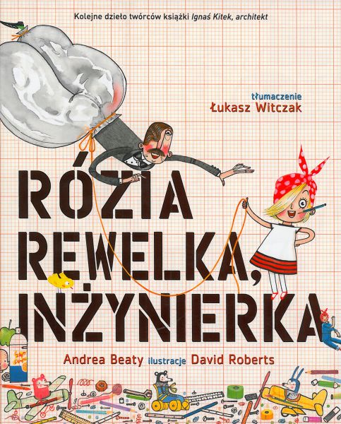 Rózia Rewelka, inżynierka / Andrea Beaty ; ilustracje David Roberts ; [tłumaczenie Łukasz Witczak]. - Wydanie pierwsze. dodruk. - Warszawa : Wydawnictwo Kinderkulka, 2017. - [32] strony : ilustracje kolorowe ; 29 cm.