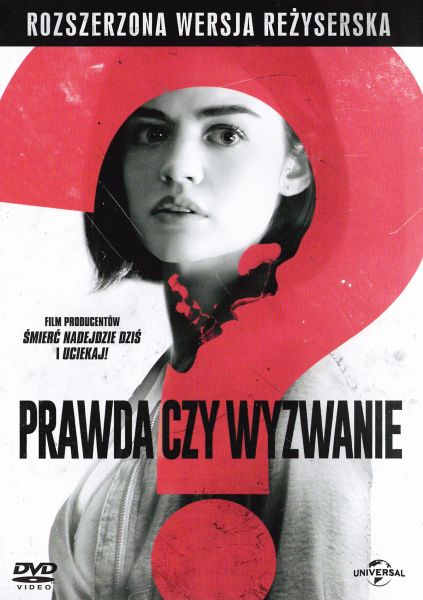 Prawda czy wyzwanie?” - niewinna zabawa przyjaciół staje się śmiertelną grą, gdy ktoś – lub coś – zaczyna karać tych, którzy kłamią bądź spróbują uchylić się przed wyzwaniem… Nowy horror ze studia Blumhouse Productions („Śmierć nadejdzie dziś”, „Uciekaj!”) z udziałem Lucy Hale (serial „Słodkie kłamstewka”) i Tylera Poseya („Teen Wolf: Nastoletni wilkołak”).