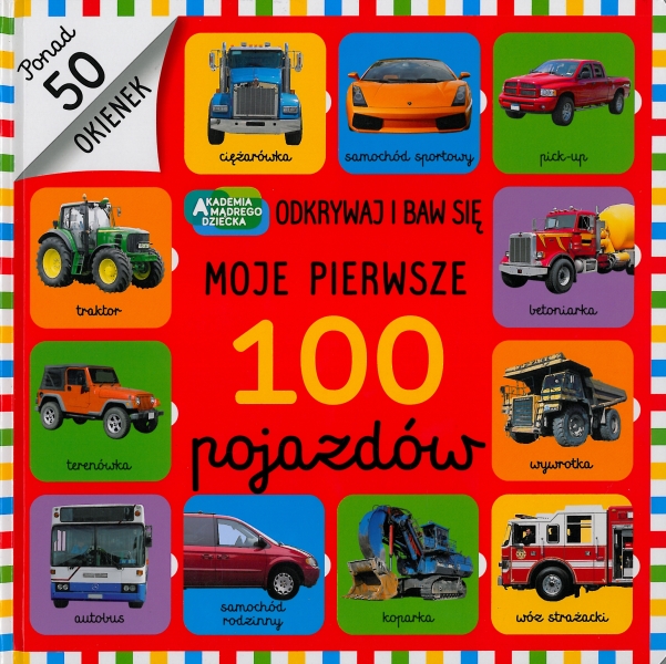 Seria książek z otwieranymi okienkami to świetny sposób, by małe dziecko mogło poznawać świat dookoła siebie. Seria składa się z czterech pozycji: „Moje pierwsze 100 słów”, „Moje pierwsze 100 pojazdów”, „Moje pierwsze 100 słów na wsi”, „Moje pierwsze 100 zwierząt”. Każdy z tytułów to edukacyjny, kartonowy boardbook z okienkami, do którego dziecko będzie wielokrotnie wracać. W tej książce Wasze dziecko pozna 100 pojazdów z całego świata: samochody osobowe, ciężarówki, śmigłowce, maszyny rolnicze i budowlane. Dzięki kilkudziesięciu otwieranym okienkom nauka będzie dla niego świetną zabawą.