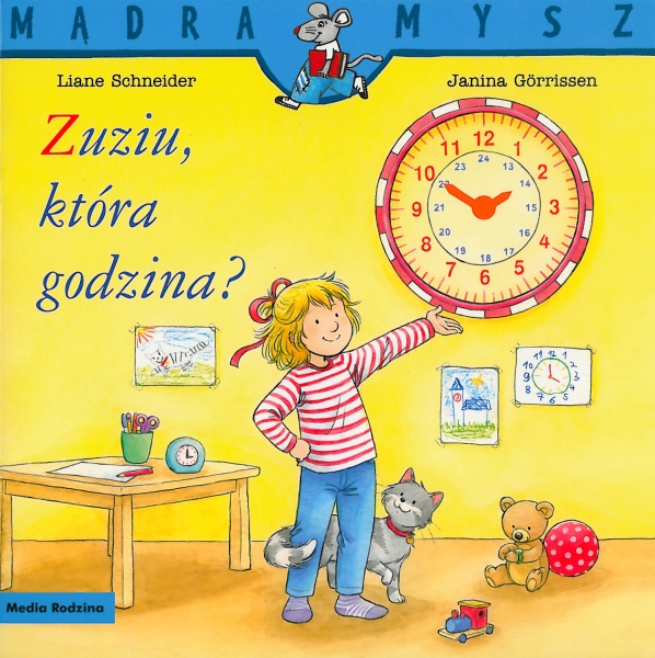 102 książeczka z serii "Mądra Mysz". Zuzia dostała w prezencie od babci budzik. Mama uczy Zuzię odczytywania godzin na zegarku. To wcale nie jest takie trudne. Teraz Zuzia już wie, o której godzinie wstaje, o której jest obiad i – co najważniejsze – kiedy jest czas na czytanie przed snem. Bardzo pożyteczna książeczka. Po jej lekturze każde dziecko odpowie na pytanie: która godzina?