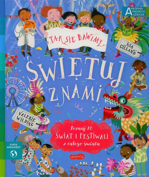 Z tej bogato ilustrowanej książki dowiesz się, jak bawią się dzieci na wszystkich kontynentach i jak świętują ważne wydarzenia. Wybierz się na małpią ucztę do Tajlandii; porównaj, jak świętuje się karnawał w Rio de Janeiro, a jak w Wenecji; sprawdź, co jada się w Grecji na Wielkanoc, a co w Meksyku na Święto Zmarłych. Przekonaj się, że święta bywają różne, lecz wszędzie to czas dobrej zabawy! „Świętuj z nami” to kolejna propozycja serii „Chcę wiedzieć. Akademia Mądrego Dziecka”, skierowanej do starszych przedszkolaków i najmłodszych uczniów. To tematy, które fascynują dzieci, nowoczesne ilustracje, które w przyjazny sposób przedstawiają różne zagadnienia i ułatwiają zrozumienie treści. Książki doskonale wpisują się w popularny nurt współczesnej edukacji – edutainment (od słów education – edukacja i entertainment – rozrywka), z którego czerpiemy, rozbudowując „Akademię Mądrego Dziecka” o pozycje dla starszych dzieci. Zaspokajamy ciekawość w sposób, który gwarantuje dobrą zabawę – a zdobywanie wiedzy jest jej częścią.
