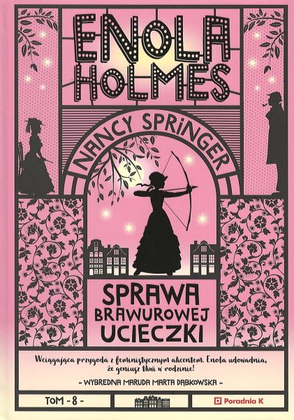 Kolejna dowcipna i inteligentna powieść z serii kryminałów retro, której bohaterka Enola, ulubienica nastolatek, śmiało radzi sobie w wiktoriańskim Londynie, ścigając złoczyńców i rywalizując z własnym bratem, słynnym detektywem Sherlockiem Holmesem. W ósmej prowadzonej przez siebie sprawie Enola pomaga swojej przyjaciółce lady Cecily uwolnić się spod kurateli okrutnego ojca, odkrywając tym samym jego mroczną tajemnicę. Enola mieszka samodzielnie w Londynie i pracuje jako perdytorystka. Takiej swobody może jej pozazdrościć lady Cecily, uwięziona w domu przez ojca tyrana. Wygląda na to, że przyjaciółka, którą Enola już dwa razy uchroniła przed zgubnymi planami baroneta, znów potrzebuje jej pomocy. Młoda detektywka urządza brawurową ucieczkę i ukrywa lady Cecily w swym sekretnym biurze. Niestety matka dziewczyny zatrudnia samego Sherlocka Holmesa do odnalezienia córki, a ten uwija się błyskawicznie. To jednak dopiero początek prawdziwych kłopotów – Lady Cecily znika ponownie, co gorsza, tym razem sama w brutalnej rzeczywistości bezlitosnego Londynu. Enola wie, że musi działać szybko, bo skrywana przed światem podwójna osobowość przyjaciółki może wpędzić ją w jeszcze większe kłopoty.