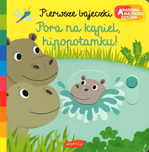 Kolejna książeczka z serii "Pierwsze bajeczki" lubianej przez dzieci ilustratorki Natalie Choux. Bohaterem książeczki jest mały hipcio, który cały dzień spędza na zabawie w wodzie. A po pysznej kolacji zasypia wtulony w mamę. Prosta historyjka, przyjazne ilustracje i ruchome obrazki wspierają rozwój maluchów i rozwijają sprawność manualną.