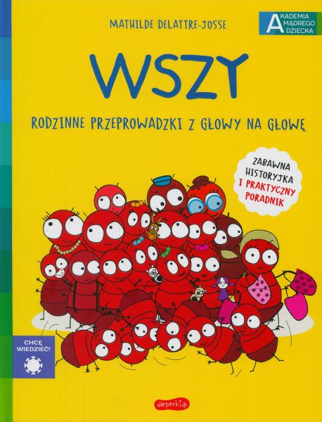 Rodzina Piotrusia Weszołka wiecznie się przeprowadza. Czego się boją? Przed czym uciekają? Dlaczego co rusz przenoszą się na kolejną głowę? I dlaczego swędzi ta, na której akurat mieszka ta baaardzo liczna rodzina? Jeśli chcecie przechytrzyć rodzinę Weszołków i skutecznie pozbyć się tych kłopotliwych lokatorów, koniecznie przeczytajcie książkę „Wszy. Przeprowadzki z głowy na głowę”. Poznacie te owady i zrozumiecie, dlaczego sprawiają tyle problemów. Czy można ich uniknąć? Czy ich obecność świadczy o braku higieny? Czy wszy mogą być groźne? Ta dowcipna książka w nowoczesny, mądry i pozytywny sposób pokazuje, jak mówić o wszawicy. Komiksową historyjkę o perypetiach rodziny pasożytów dopełnia część edukacyjna, zawierająca sporo ciekawostek. To użyteczny przewodnik informujący o tym, co zrobić, gdy problem dotyczy dziecka i/lub dorosłego. „Wszy. Przeprowadzki z głowy na głowę” mogą posłużyć jako pomoc dydaktyczna do rozmowy z dziećmi o wszach. Książka obala wiele mitów, które wciąż pokutują i są bardzo krzywdzące. Akademia mądrego dziecka. Chcę wiedzieć to seria książek popularyzujących naukę przeznaczona dla starszych przedszkolaków oraz uczniów szkół podstawowych. Dzięki bogatym, kolorowym ilustracjom i ciekawej formie książki wpisują się w zdobywający popularność nurt edutainment (od angielskiego education – nauka oraz entertainment – rozrywka), którego celem jest edukacja poprzez rozrywkę.