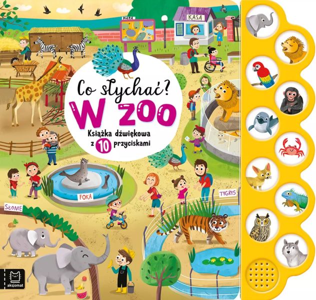 Maluchy z zapałem poznają świat, używając do tego wszystkich zmysłów. Książka dźwiękowa z przyciskami i bogatymi ilustracjami odpowiada ich potrzebom. Bawiąc się nią, dzieci poznają zwierzęta, a powtarzając wierszyki i naśladując odgłosy, rozwijają pamięć, słuch oraz wrażliwość na słowo i obraz. Jak korzystać z tej książki? Aby wysłuchać nagrania, naciśnij kółeczko. By je wyłączyć, naciśnij jeszcze raz. Słuchaj z dzieckiem wierszyków i zachęcaj do ich powtarzania. Na każdej rozkładówce książki znajduje się wesoła wiewiórka i biała papuga. Poszukaj ich z dzieckiem. Proś dziecko, by wskazywało i mówiło, gdzie znajdują się też inne elementy. Nazywaj elementy obrazka, licz je i zachęcaj dziecko do opowiadania. Panel z przyciskami jest dobrze widoczny w książce i łatwo z niego korzystać. Każdy przycisk to dla dziecka miła dźwiękowa niespodzianka – dobrze nagrany, łatwy do powtórzenia wierszyk. Naciskanie przycisków i uruchamianie nagrań daje dzieciom radość i satysfakcję ze zwiększającej się samodzielności. Odtwarzanie nagrań, gdy się znudzą, można zablokować.