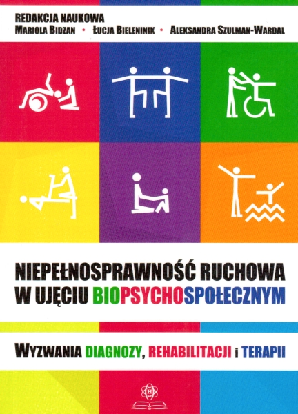 Publikacja "Niepełnosprawność ruchowa w ujęciu biopsychospołecznym" stanowi próbę ujęcia wielowymiarowej i wielokierunkowej optyki, przez którą powinno się postrzegać człowieka w jego dynamicznej przestrzeni życia, także w wymiarze dotyczącym motoryki. Książka podzielona jest na cztery części. W pierwszej z nich autorzy dzielą się swym spojrzeniem na medyczne i psychospołeczne aspekty niepełnosprawności ruchowej. Unikatowy charakter publikacji znajduje swoje odzwierciedlenie w części drugiej, gdzie bezpośrednie doświadczenia związane z sytuacją choroby przedstawiają sami chorzy, jak również osoby uczestniczące w przewlekłym procesie rehabilitacji. W trzeciej części wskazano na wielowymiarowe podejście do procesu rehabilitacji chorych z niepełnosprawnością ruchową – zarówno dzieci, jak i dorosłych. W czwartej część przedstawiano aspekty prawne, które powinny zainteresować wszystkie osoby biorące udział w procesie diagnozowania, terapii czy rehabilitacji.