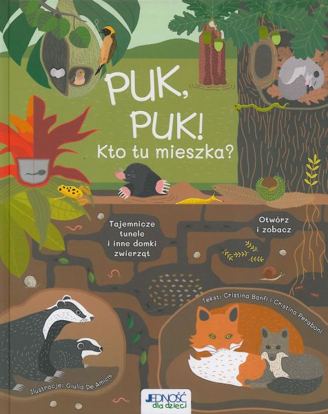 Ta książka zaprasza wszystkich małych czytelników do odwiedzenia rozmaitych domów zwierząt: norek, dziupli, gniazd, uli, mrowisk, jam i wielu innych fascynujących kryjówek, w których żyją i wychowują swe młode różni przedstawiciele fauny. W świecie przyrody nie brak genialnych architektów, którzy konstruują nie tylko prawdziwe dzieła sztuki, ale i przemyślne, bezpieczne i bardzo praktyczne siedziby zapewniające ich lokatorom komfort niczym pięciogwiazdkowe hotele! Ta oryginalna publikacja składa się z dwudziestu arcyciekawych rozdziałów (znajdziemy w nich otwierające się okienka, zakładki i tajemnicze zakamarki). Każdy z nich wypełniony jest mnóstwem przyrodniczych ciekawostek i niezwykle realistycznymi ilustracjami, które pobudzą wyobraźnię młodych czytelników i sprawią, że poczują się jak prawdziwi zoolodzy odkrywcy podglądający i badający świat zwierząt! Puk, puk! Kto tu mieszka? Zaraz się przekonamy!